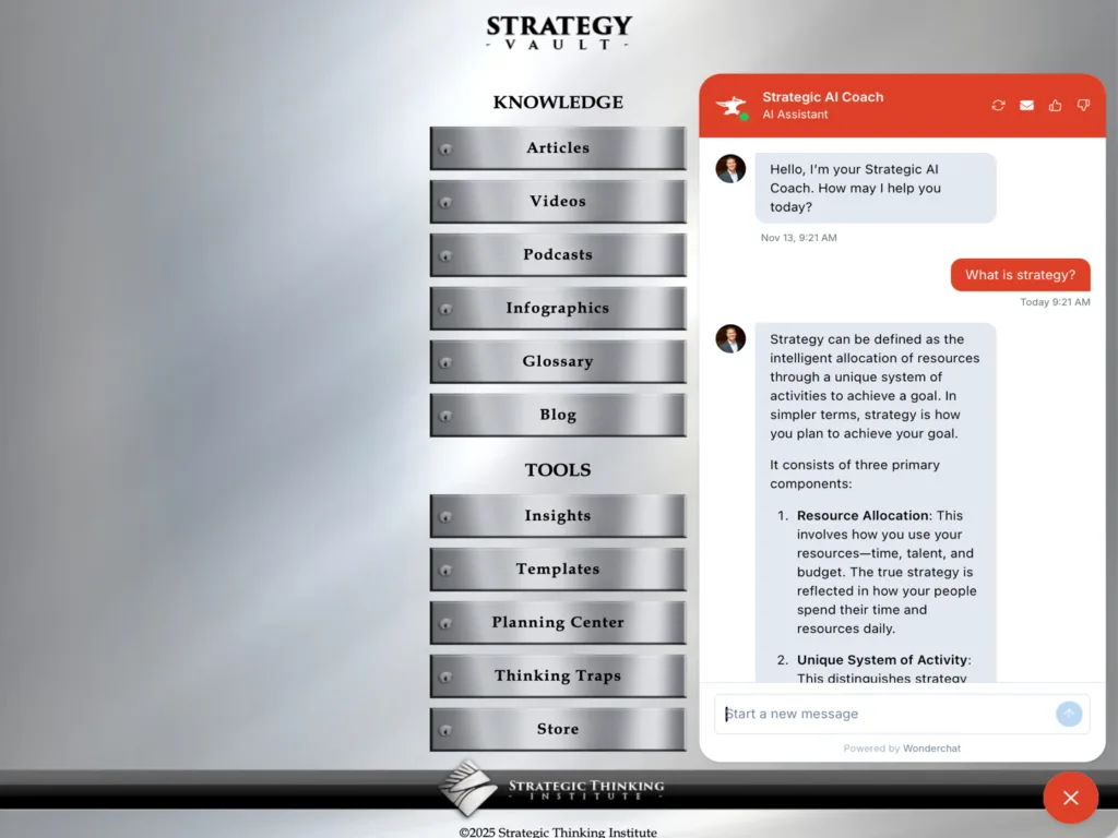 Featuring hundreds of tools, templates, and other content to help you think, plan, and act strategically, it’s built from Rich Horwath’s 25+ years of proprietary content including his eight books and hundreds of articles, videos, audios, and infographics. It features the Strategic AI Coach, which enables you to ask questions, gain new knowledge, and receive instantaneous feedback on your GOST Framework plan. Develop your strategic thinking skills to separate yourself from the competition and realize your competitive advantage.